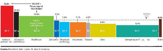 我們再看看業界的研發投入均值,對於軟體和互聯網企業,研發投入均值為收入的15.5%,電腦和電子研發投入均值為5.7%,所有行業整體研發投入均值為8.1%。這樣比較看來,蘋果的研發投入是遠遠低於業界平均水準的。