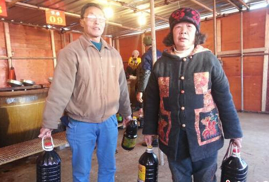 提着刚打好的酱油走出来的市民贺云俊说,自己打了20斤,家里自用,可以吃上一年,今年已经是他打酱油的第五个年头了。“这个一块七一斤,比平时卖的还便宜两毛钱,而且这个酱油的口感比外面买的好,做菜好吃,上色也好。”