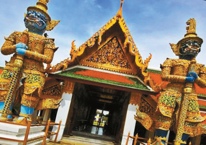 到泰國旅行,參觀四面佛是必不可少的項目。四面神(Four-Face Buddmst ldol),又稱四面佛,意為梵王,印度婆羅門教主神。在泰國各地以至泰人住家院庭內多有設定。位於曼谷愛侶灣凱悅酒店邊、崇光百貨公司旁的馬路轉角處的四面佛,聲名遠播,香火最盛。據了解,在拜四面神時,通常用鮮花、香燭和木像,或者將麻雀放生,富有者則戶幾名穿著泰國古代民族服裝的少女在佛像前隨著音樂邊歌邊跳傳統的祭神舞,意在祭神、謝神或還願,以謝神恩。除此之外,還有歷代王宮保存最完美、規模最大、最有民族特色的拉瑪九世皇朝大皇宮。這里匯集了泰國建築、繪畫、雕刻和裝潢藝術的精萃,其風格具有鮮明的暹羅建築藝術特點,深受各國游人的贊賞,被稱為「泰國藝術大全」。
