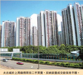 按地區劃分,九龍區四大屋苑周末合共錄得7宗成交,較上周的3宗勁升1.3倍,其中「美孚新恏」共錄4宗交投,而「黃埔花園」則有3宗成交,不過「麗港城」及「新都城」均錄得「零成交」。至於新界區亦錄7宗二手買賣個案,其中「映灣園」及「嘉湖山莊」各錄得3宗成交,而「沙田第一城」僅錄得1宗成交。港島區三大屋苑合共錄得5宗買賣個案,其中「太古城」、「康怡花園」各自錄得2宗二手買賣,保持平穩,而「杏花恏」錄得1宗成交。