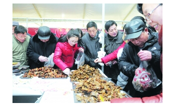 中國江蘇網2月9日訊 7日,由淮安報業傳媒集團主辦,市委農工部、市農業委員會、市供銷合作總社協辦的“老阿姨香菇醬·淮安優質農副產品產銷對接會暨迎新春年貨展銷會”在大運河文化廣場盛大開幕,150多家農業生產、流通、經營企業展售自己的特色產品。據了解,本次展銷會為期9天,將于15日閉幕。(記者 楊春陽)