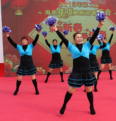 一場熱舞《小蘋果》拉開了年貨展第三日的序幕,由秀英區長秀社區中老年廣場舞團帶來的勁歌熱舞,將展會現場的氣氛推向高潮(南海網記者楊曦)