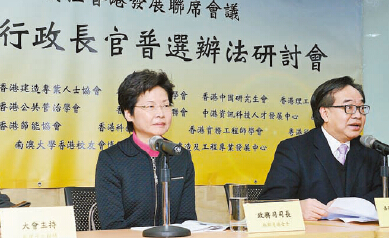 林鄭昨日傍晚出席「關注香港發展聯席會議」舉辦的「2017行政長官普選辦法」閉門研討會,會後沒有回應記者提問。聯席會議顧問委員會主席、立法會工程界議員盧偉國在會上公開讚揚林鄭一直迎難而上,渡過一個個難關,但她依然感到悲觀,只因社會上有一小撮意見完全不接受人大「8.31」框架下的任何方案。