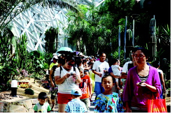 場館方面,植物館云集小葉紫檀、“見血封喉”等800余種新奇特植物,尤其令人期待的是將新增國內最大規模的水母展館,世界各種罕見水母群落都可以在此欣賞到,同時引進大量群游魚類展示,如觀賞性極高的珊瑚礁魚類、鷂鲼等軟骨魚類,再現海洋中群魚游動的壯觀景象。夢幻影院將增加4D動感電影片源,舉辦行業沙龍、小規模影迷會等。園藝文化中心將升級巧克力城堡打造兒童糖果城堡,增加互動類兒童游樂設施。觀景臺下方的隧道內繪有世界“最大的360°全景畫”,站在合適的位置可體驗到上天入地的時空交錯與穿越感。蓮花館內有兩億七千萬年前的巨型完整海百合古化石,重約3噸的金箔檀香木雕《妙法蓮華經》,珍稀沉香木雕展品《花開見佛》等精美珍貴的藝術展品,帶給游客一場古色古香的蓮文化之旅。