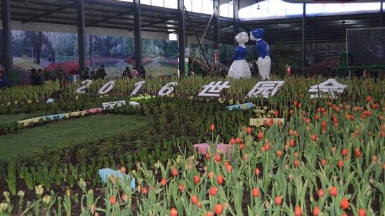 本屆花卉展以花卉文化為主線,秉承綠色、生態、環保的理念,設六大景觀區,用植物造景與園藝手法打造,融展示、觀賞、旅游于一體的花卉大觀園,展區室內布展面積近10000平方米。在郁金香品種選擇和方案設計上,采用了自然式的布展手法,主要觀賞區內使用顏色鮮艷、抗性較強的大規格郁金香品種,顏色以紅、黃、粉、白為基調,突出郁金香整體觀賞效果。此外,還搭配其他諸如風信子、彩色馬蹄蓮、非洲菊、水仙等球根、宿根花卉競相綻放,向游人展露出絢麗的嬌容。在園藝小品布局上采用中西結合方式,既有荷蘭的風車、木屐等元素也有小橋流水、幽靜田園等中式元素。