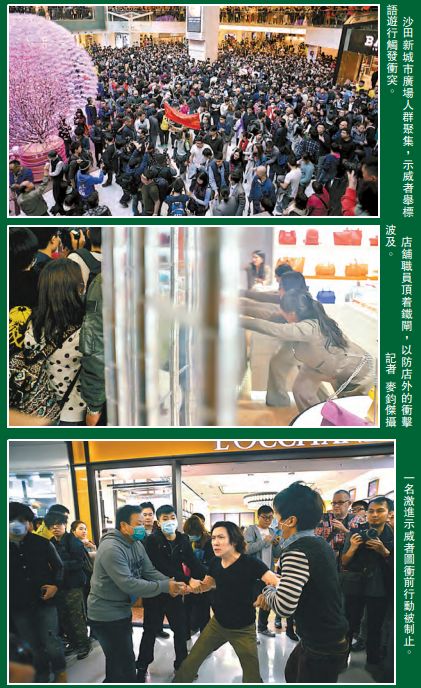 【香港商報網訊】記者王珈莉報道:繼上周多個本土派及港獨團體發起所謂「光復屯門」行動,結果釀成警民沖突后,再有網民響應一個網上名為「捍衛沙田·取消一簽多行活動」的號召,昨午到沙田滋事,針對自由行旅客及水貨客。數百名示威人士聲稱於沙田新城市廣場購物,沿途不斷指罵拖著行李篋的內地旅客,更多次與警方發生沖突。警方多番控制失效,一度施放胡椒噴霧鎮壓,沖突中拘捕5名男子。期間商場內不少店舖落閘避禍,生意大受影響。有內地旅客直斥香港人很麻煩;亦有沙田居民認為事件已嚴重影響香港形象。