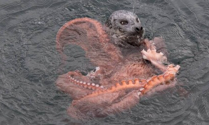 雖然海豹吞食章魚並不算罕見,但這種場景被照相機記錄下來的卻很少。此次被吃掉的巨型章魚到底有多沉不好估計,但一般來說,成年章魚的重量能達到50鎊左右,有記錄最沉的一只有600多磅。