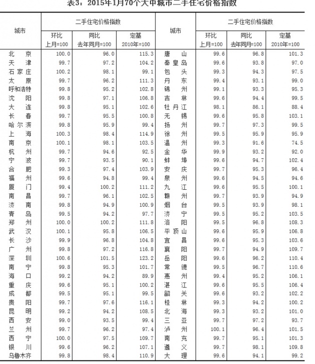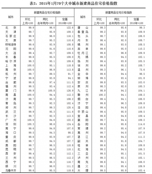 (二)與去年同月相比,70個大中城市中,價格下降的城市有67個,上漲的城市有3個。1月份,同比價格變動中,最高漲幅為1.5%,最低為下降13.9%。