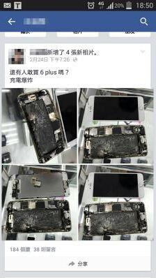 蘋果iPhone 6 Plus驚傳充電爆炸!據臺灣“中央社”2月25日報道,臺灣地區民眾王威程24日在社交網站Facebook上發出圖文表示,自己的手機充電爆炸,并配文字寫道:“還有人敢買6 Plus嗎?”