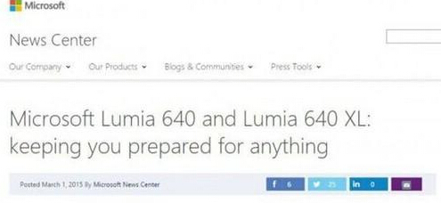 此次MWC 2015大會上,除三星、HTC、華為之外,微軟據稱也將推出多款Windows Phone新設備。雖然微軟發布會在今天下午15:30才會正式舉行,不過昨日微軟官網卻提前放出了兩款新機Lumia 640與Lumia 640 XL發布的新聞稿。