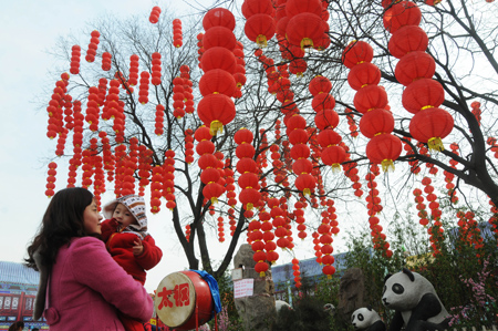 3月2日,山西太原动物园,数百只红色灯笼挂满枝头,犹如“灯笼树”,营造出浓浓节日气氛。