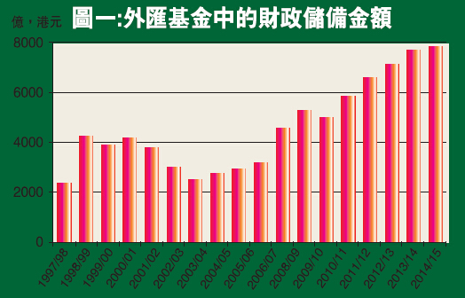 表中見到,去年底在外匯基金的資產負債表上,財政儲備已錄得7887億,財爺上周更言本財政年度將達8195億元儲備,此乃第一筆可動用的資金。