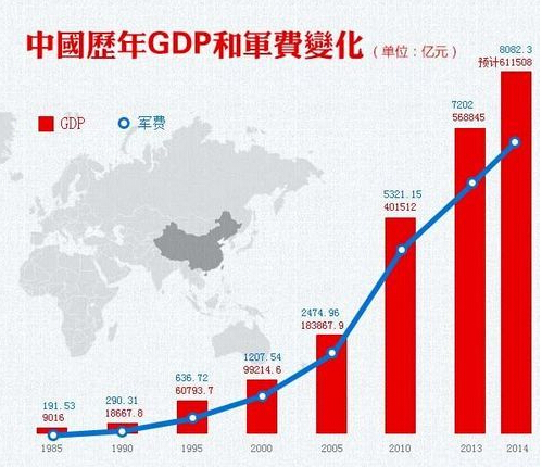 中國歷年GDP和軍費變化(鳳凰軍事)