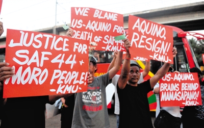 一個多月前,菲律賓警方在菲南部抓捕恐怖分子時與盤踞當地的反政府武裝交火,44名特警慘遭圍攻身亡。事件激起強烈民憤,一些團體和個人要求阿基諾辭職下臺。阿基諾的政治盟友、參議員奧斯敏納3月1日在接受電臺采訪時呼吁阿基諾就此事件“向菲律賓人民道歉”。