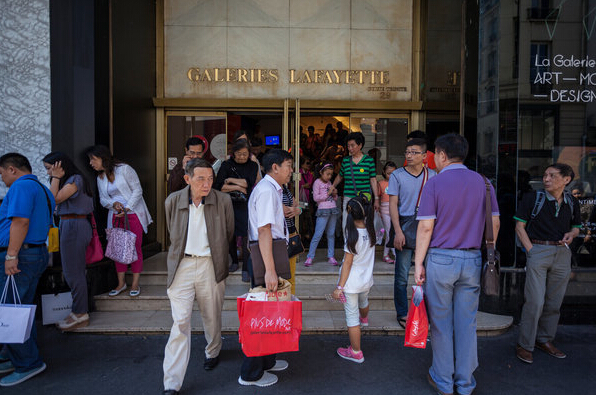 中國游客在巴黎市中心奧斯曼大道上。