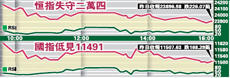 由於恒指已跌穿50天線,技術上已進入反覆試低位中,即使再進一步下調,惟只屬升后回調而已,不會變成一次新的中期跌浪。大市是潮升浪是始自去年12月17日低位22530點,至2月27日高位25102點止,累升2572點,現時50天線已失,故恒指或會回調升幅2572點之一半,即或回試23816點之支持。相對昨日低位23870計,差距僅為54點,如無突發之利淡消息,可能跌近首個調整底部。恒指另一支持點為250天線。
