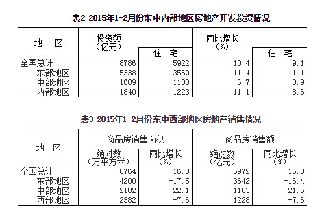 1-2月份,东部地区房地产开发投资5338亿元,同比增长11.4%,增速比去年全年提高1个百分点;中部地区投资1609亿元,增长6.7%,回落1.8个百分点;西部地区投资1840亿元,增长11.1%,回落1.7个百分点。