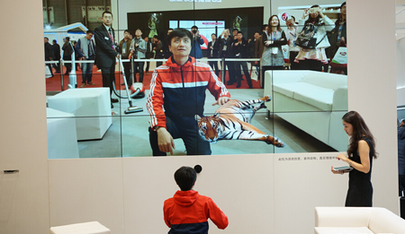 众所周知,“老虎屁股摸不得”,但是在11日家博会的现场,这位小哥在虚拟技术的帮助下,着实“玩弄”了老虎一