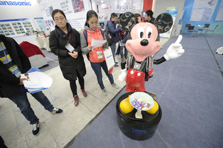 中国制博会在天津开幕 机器人演绎“智造中国梦”。