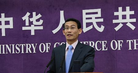 3月17日上午商务部举行例行新闻发布会,中国经济网进行直播。图为商务部新闻发言人沈丹阳。中国经济网记者 彭金美/摄