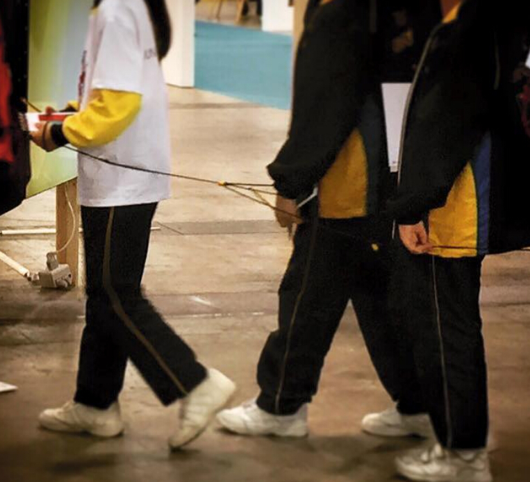 一連五日的巴塞爾藝術展昨日結束,網上流傳一張展館內拍攝照片,顯示有參加導賞團的學童,被要求以繩索連繫,由導賞員帶領,被網民質疑大會對學童不人道。負責展覽的機構回應當日參觀的幼童,只是以手捉住繩索,過程並無捆綁。