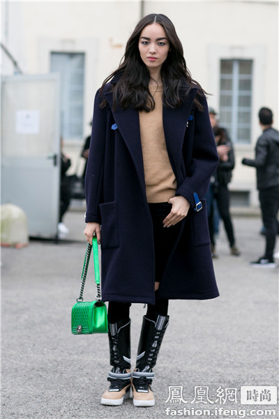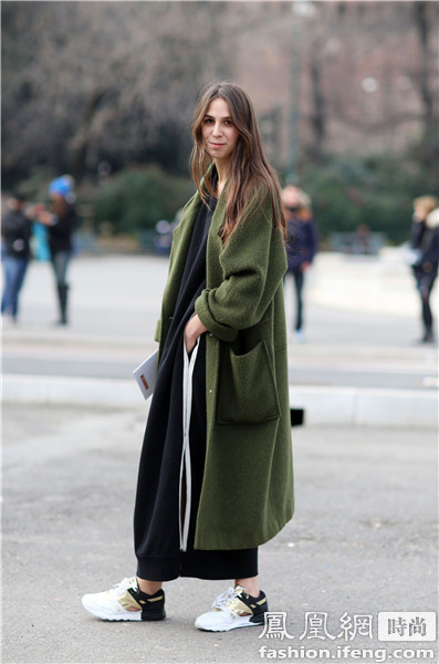 时尚博主blogger Elisabetta Di Maso 军绿色羊毛大衣惹眼