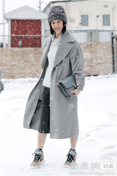 Lucky Magazine创意总监Eva Chen灰色的装扮整套造型看起来十分干净