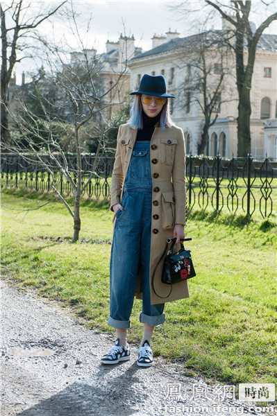 韩国模特Irene Kim这身造型也十分值得借鉴,背带裤搭配平底运动鞋一样很有格调