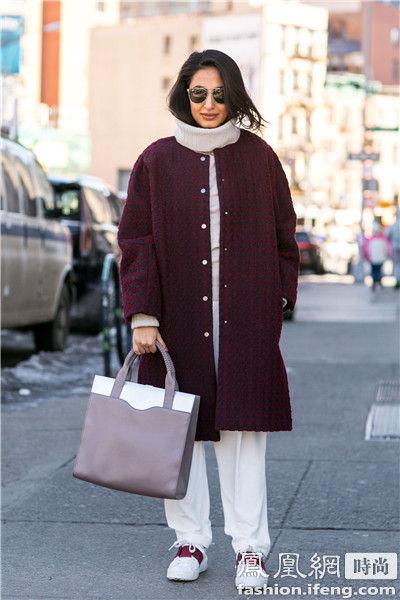 造型师、时尚撰稿人Nausheen Shah简单的套装搭配白色运动鞋造型随意复古