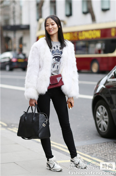 中国名模李小星这身造型很时髦皮草与手袋在重量感上达到平衡不会有头重脚轻的感觉