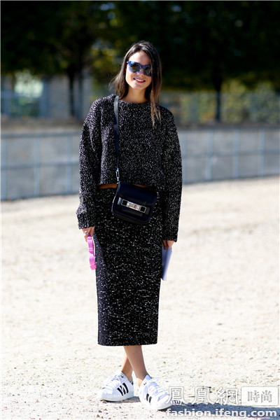 黑色的连衣裙搭配白色的运动鞋也是不错的