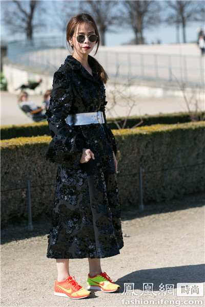 韩国模特Irene Kim花俏的造型搭配黑色运动鞋