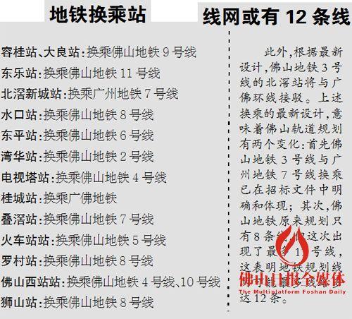 同樣是去年年底,記者從地鐵三號線相關檔中獲悉,佛山地鐵三號線共設8座換乘站。不過,在新招標公告中,換乘站已多達14座。