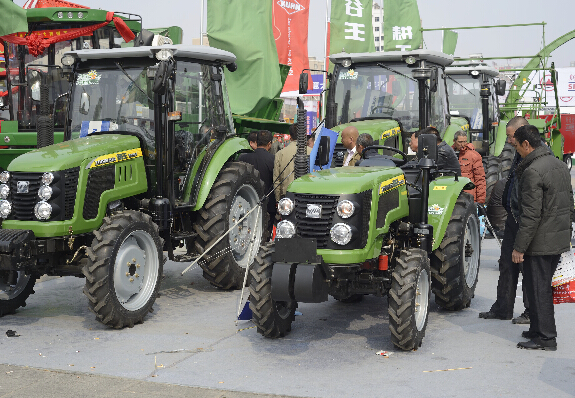 3月26日,內蒙古農牧業機械展覽會上,農民關注拖拉機。當日,第七屆內蒙古農牧業機械展覽會在呼和浩特開幕,會期3天,現場展售兩千餘台農機具。