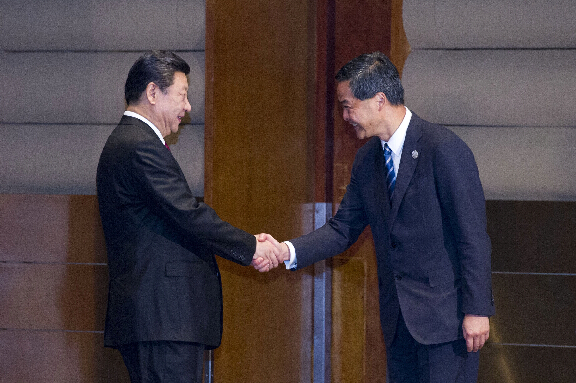 3月28日,中國國家主席習近平在海南博鰲與出席博鰲亞洲論壇2015年年會的香港特別行政區行政長官梁振英握手。