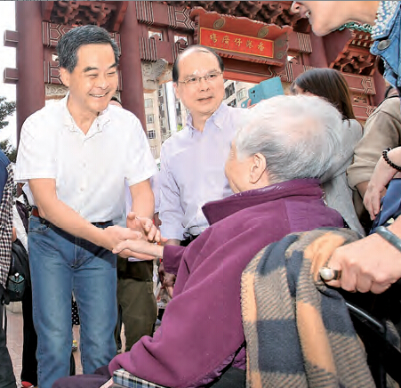 CY昨日一反平日西裝筆挺的形象,以一身白色恤衫、牛仔褲打扮示人之餘,更與市民合照,作風親民。張建宗在視察后表示,不少屋恏及新界西北地區,都需要綠色小巴做交通接駁工具,相信計劃可令更多長者走進社區,甚至鼓勵仍有能力的長者就業。他說,八成二小巴路線已加入計劃,希望2、3個月后會有第二批加入;運輸署會協助90多條未加入的路線,處理技術及財務問題。