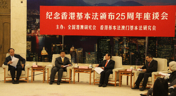张荣顺是在全国港澳研究会、香港基本法澳门基本法研究会举行的纪念香港基本法颁布25周年座谈会上作上述表示的。国务院港澳办副主任周波,中央政府驻港联络办公室副主任黄兰发,全国港澳研究会会长陈佐洱和副会长王振民、饶戈平、刘兆佳,香港基本法教育协会会长、香港立法会议员梁美芬,全国人大常委会香港基本法委员会副主任梁爱诗、委员谭惠珠出席座谈会并发言,来自香港和内地的50余位政界、专家学者参会。
