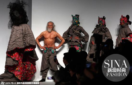 导语:前两天,2015秋冬中国国际时装周胡社光的“东北大花袄”大秀开始前,79岁的王德顺老爷子登台表演了一段哑剧,并在秀场结束时光!着!膀!子!谢幕!老爷子不管是身材还是气场,都把我们震撼得duang~duang~的。