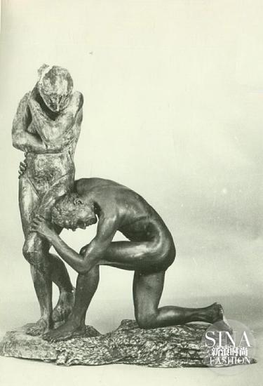 “活雕塑”:左为罗丹雕塑,右为扮成雕塑的王德顺老爷子