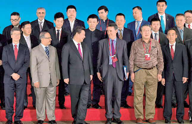 習近平在今年的博鰲論壇上多次提到「邁向命運共同體」的理念。圖為他與中外演講人代表合影。