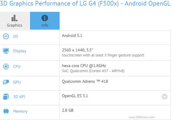 最近LG G4出現在跑分軟件GFX Benchmark上,主要的參數配置也隨之曝光。大體上看與之前曝光的傳聞相符,但在處理器方面卻令人意外:六核驍龍808芯片+Adreno 418 GPU。