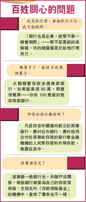 醞釀20多年的存款保險,終於隨著《存款保險條例》3月31日的公布塵埃落定,5月1日施行。從公布的內容來看,與去年11月30日,國務院正式發布《存款保險條例(徵求意見稿)》,并無太多改變,意見稿中就提到,存款保險最高賠付限額為人民幣50萬元。