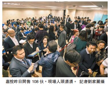 【香港商報網訊】記者劉家麗報道:嘉華國際(173)昨日起連續三日分階段推售旗下將軍澳「嘉悅」318個單位,昨日率先發售首批108伙。據市場消息指,一、兩房間隔深受買家歡迎,據悉,昨晚9時前,所有一、兩房全部沽清。發展商於今明兩日繼續推售單位,根據銷售安排,其中今日發售98伙,明日發售112伙。