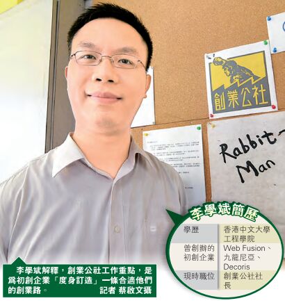 今年30多歲的李學斌,早於2004年在香港中文大學畢業前,已投身創業行列;期間縱然面對重重波折,仍未損他不斷創業的決心。2013年,他獲游戲開發商「拉闊游戲」創辦人高重建的邀請,出任創業公社社長,為有志投身創業人的年輕人出謀獻策。