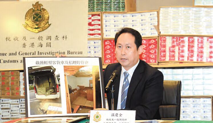 溫慶全指出,海關根據線報作出深入調查後,前日認為時機成熟,派出多名關員,在天水圍截獲一輛目標輕型貨車,在車內發現一批懷疑私煙,關員其後掩至附近一個倉庫,再搜出大批懷疑私煙,行動中拘捕2名涉案男子(40歲及42歲)。