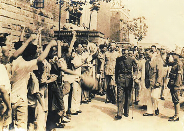 抗戰勝利,蔣介石向全國軍民發表廣播演說后巡視重慶軍區。