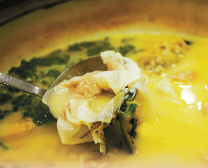 春意中的江南,「醃篤鮮」這道菜幾乎家家戶戶都做。「醃」是鹹的意思,代表著原料中的鹹肉;「鮮」,指新鮮春筍;「篤」,就是用小火慢慢燉。「醃篤鮮」關鍵的食材是春筍,加入百葉,筍的清香做一鍋湯的靈氣,美味發揮到極致。