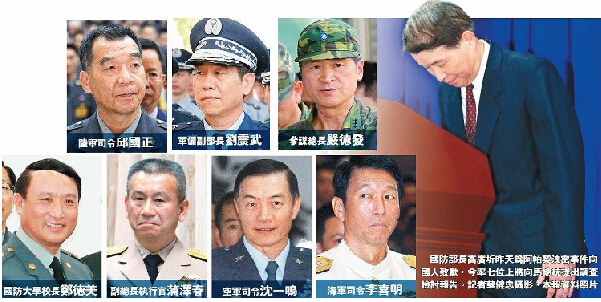 臺“防長”攜“7將21星”就阿帕奇案向馬英九請罪