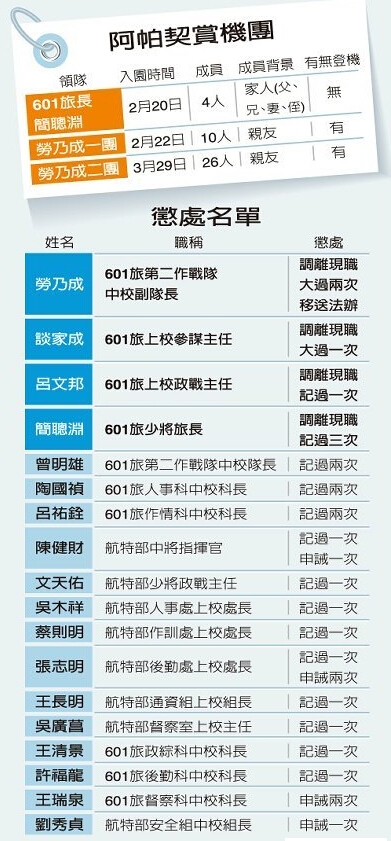 阿帕奇賞機團及涉案懲處名單