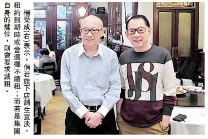 他指出,「游客都唔來,又畀人鬧又畀人踢,個市有排淡」。其中復活節期間,英皇鐘錶珠寶生意額跌約40%。楊受成表示,復活節期間去了菲律賓度假,一起同行的包括行家周大福(1939)主席鄭家純及六福集團(590)主席兼行政總裁黃偉常,他們都說生意額均跌約30%,證明市道很差、「生意好曳」。